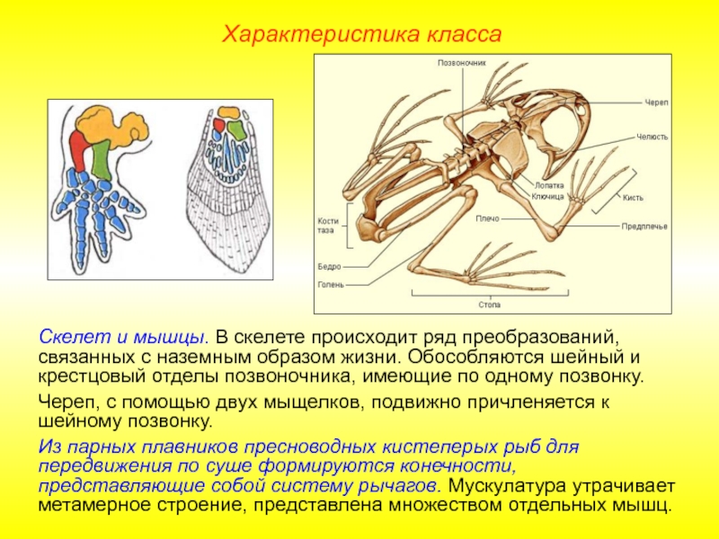 наземным образом жизни. Обособляются шейный и крестцовый отделы позвоночника, имеющие по одному позвонку.