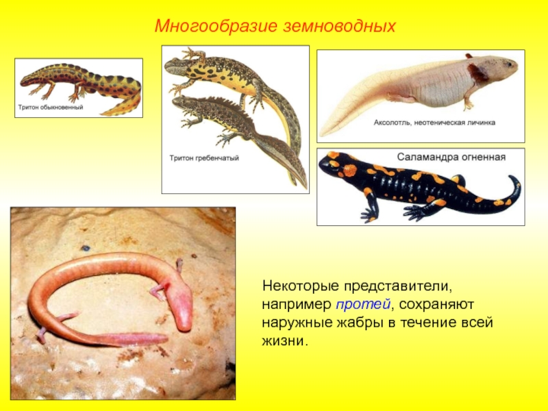 Некоторые представители, например протей, сохраняют наружные жабры в течение всей