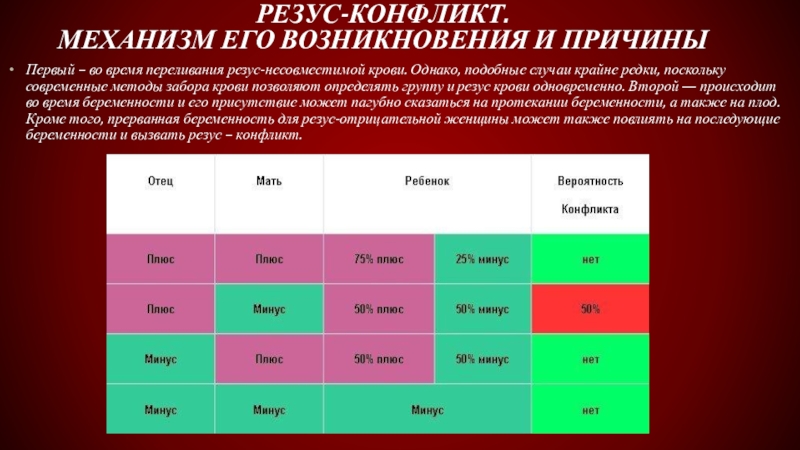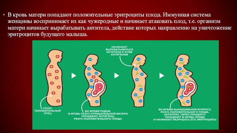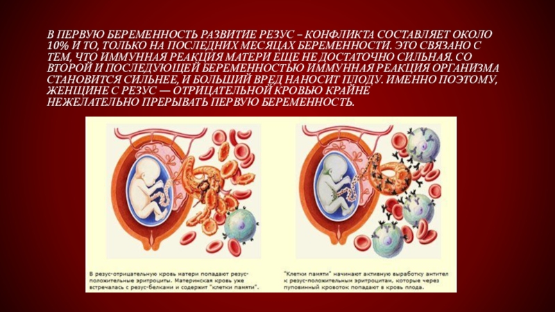 В первую очередь, к фактору риска относится прерванная беременность, внематочная беременность, медицинский или самопроизвольный аборт. В организм женщины запускается иммунная защита и в последующую беременность уже запускаются процессы по угнетению эритроцитов плода.