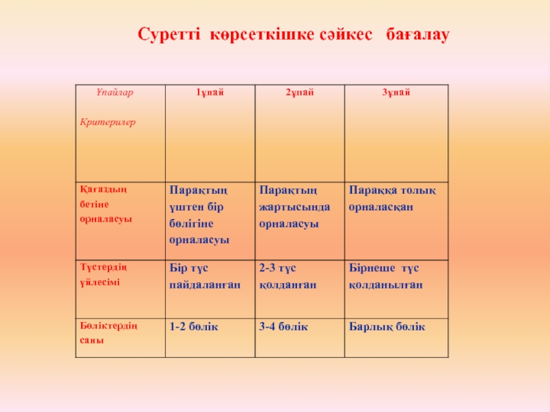Оқушының критерийлер бойынша ең жоғары жетістіктерге жету қадамдарын көрсетеді