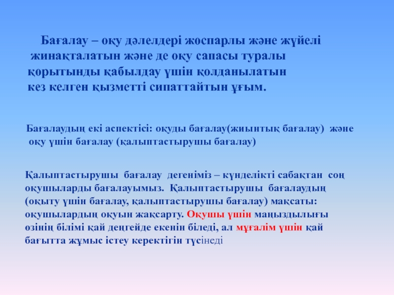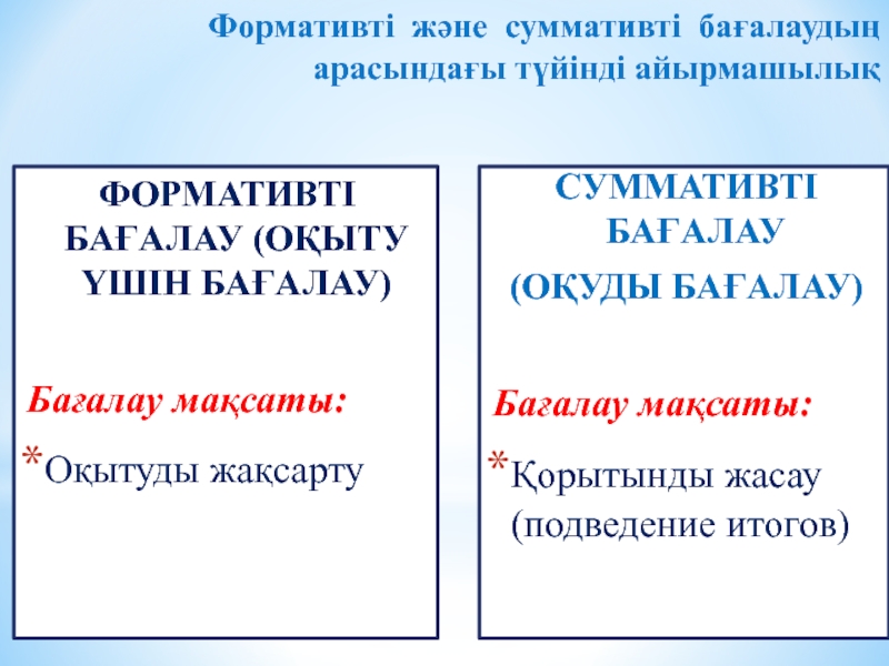 Бағалаудың екі аспектісі: оқуды бағалау(жиынтық бағалау) және