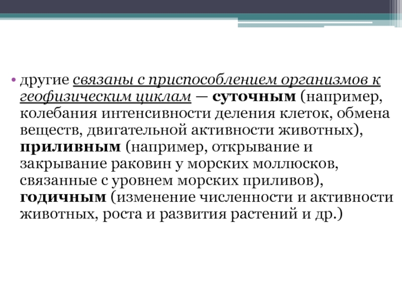 Слайд 4другие связаны с приспособлением организмов к геофизическим циклам — суточным (например, колебания