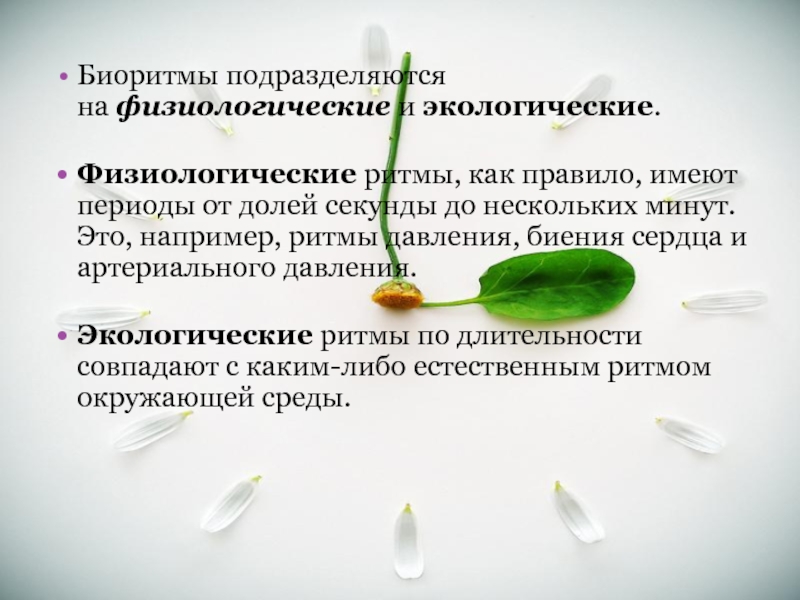 Слайд 7Биоритмы подразделяются на физиологические и экологические.