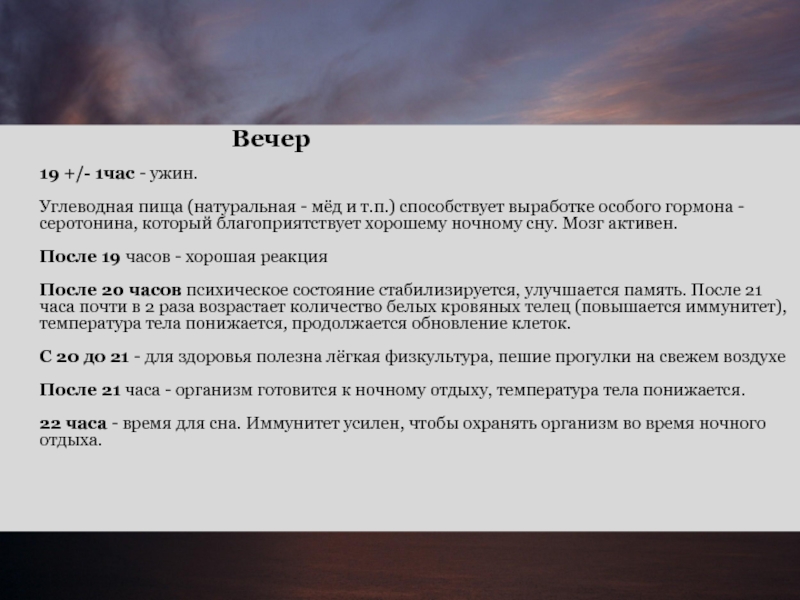 После 21 часа - организм готовится к ночному отдыху, температура тела понижается.