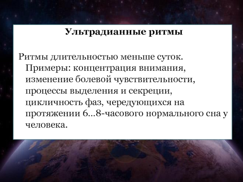 Ритмы длительностью меньше суток. Примеры: концентрация внимания, изменение болевой чувствительности,