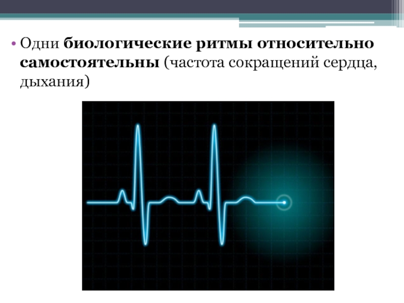 Слайд 3Одни биологические ритмы относительно самостоятельны (частота сокращений сердца, дыхания)
