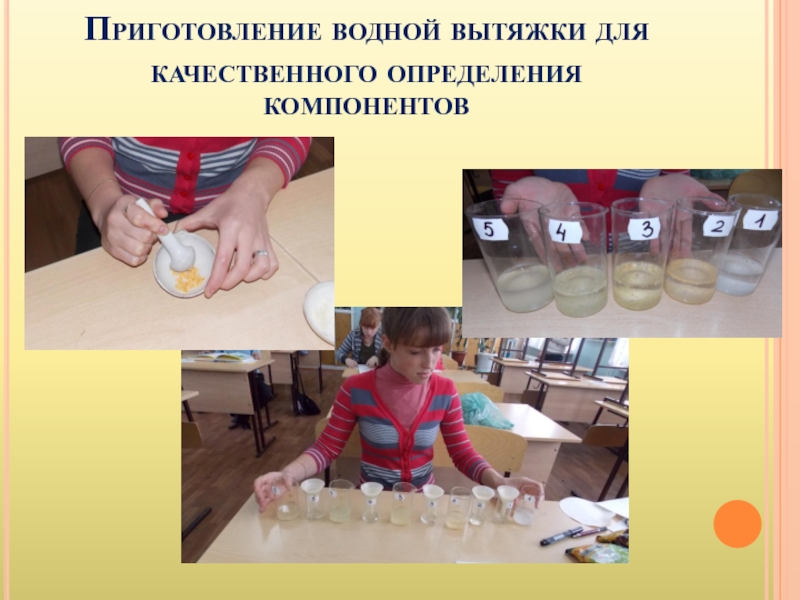 Слайд 10Приготовление водной вытяжки для качественного определения компонентов