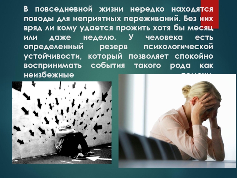 Слайд 2В повседневной жизни нередко находятся поводы для неприятных переживаний. Без них