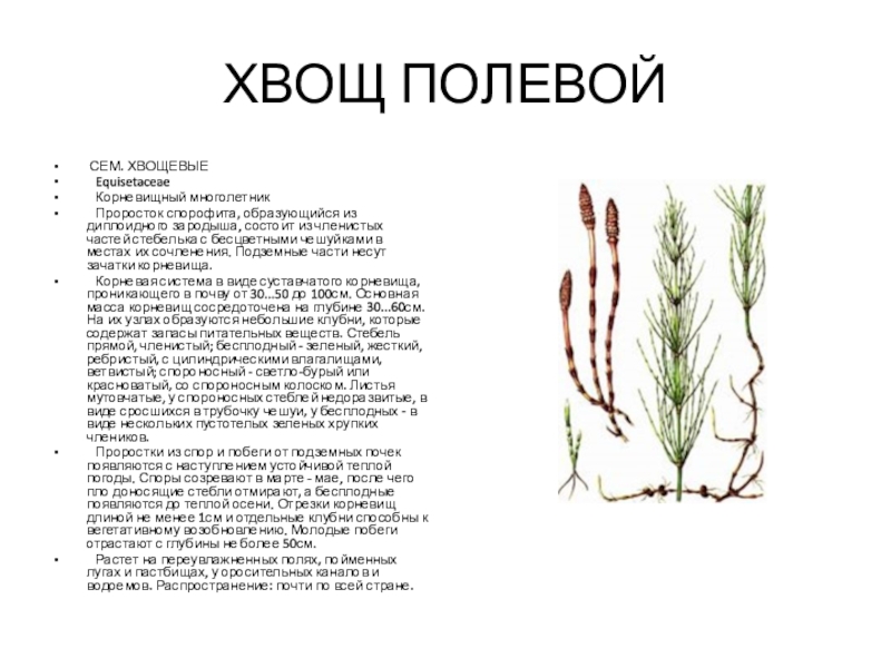 Слайд 14ХВОЩ ПОЛЕВОЙ