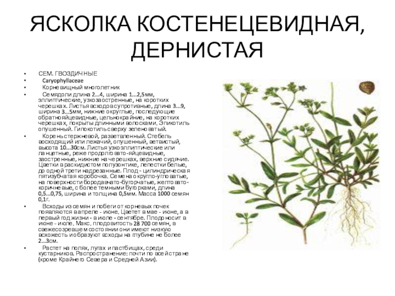 Слайд 3ЯСКОЛКА КОСТЕНЕЦЕВИДНАЯ, ДЕРНИСТАЯ