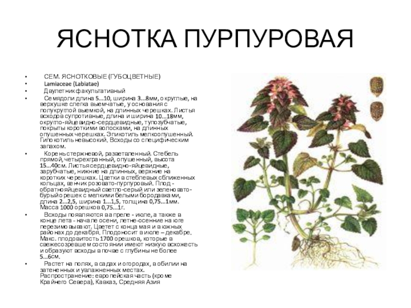 Слайд 1ЯСНОТКА ПУРПУРОВАЯ