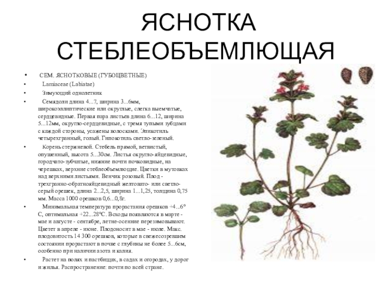 Слайд 2 ЯСНОТКА СТЕБЛЕОБЪЕМЛЮЩАЯ