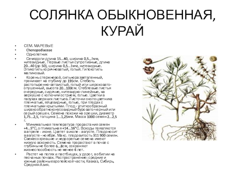 Слайд 18СОЛЯНКА ОБЫКНОВЕННАЯ, КУРАЙ