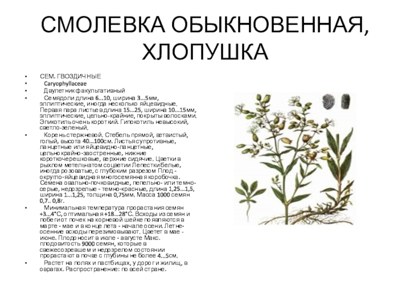 Слайд 19СМОЛЕВКА ОБЫКНОВЕННАЯ, ХЛОПУШКА