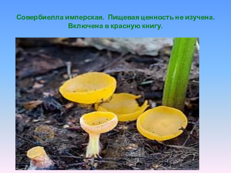 Слайд 13Совербиелла имперская. Пищевая ценность не изучена. Включена в красную книгу.