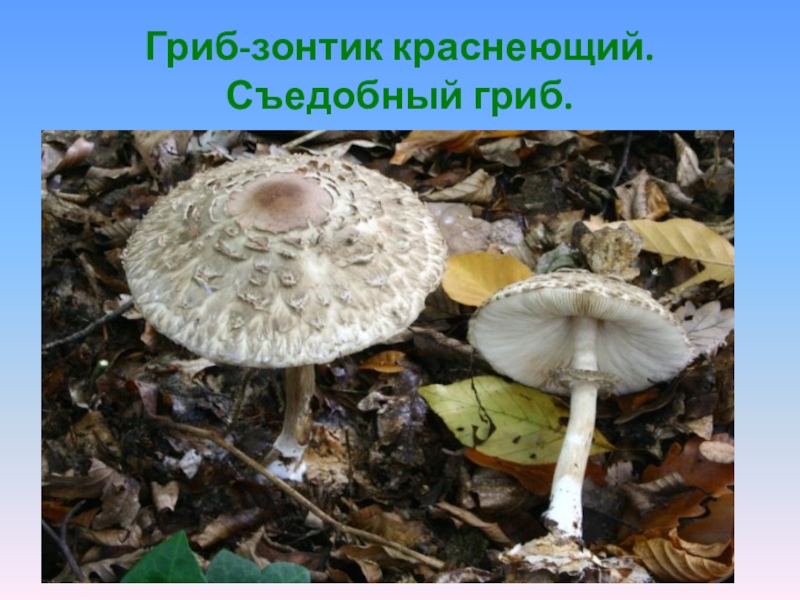 Слайд 3Гриб-зонтик краснеющий.