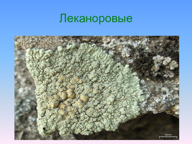 Ведущими семействами являются: Фасциевые, Телосхи́стовые, Парме́лиевые, Бацидиевые и Леканоровые, Калоплака, Феофисция, Фисциевые, Лекания, Леканора, Фискония, Ринодина.