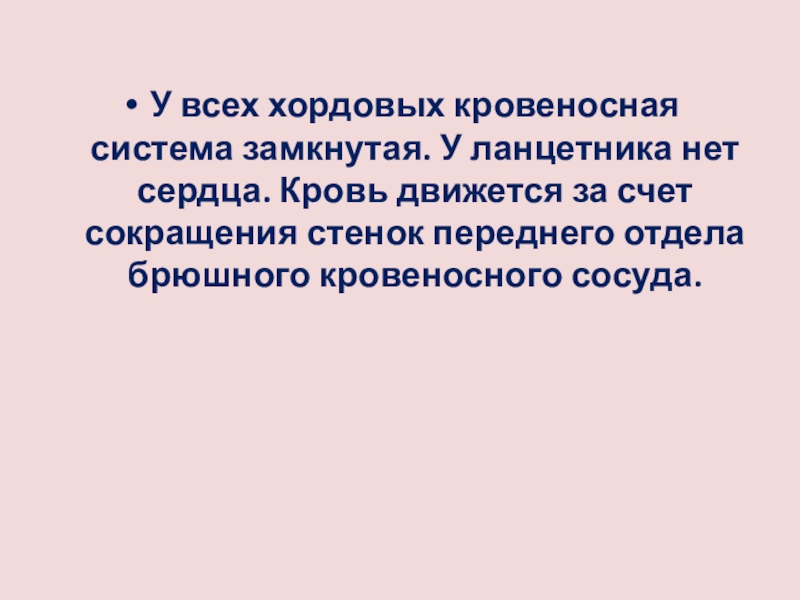 Слайд 15У всех хордовых кровеносная система замкнутая. У ланцетника нет сердца. Кровь