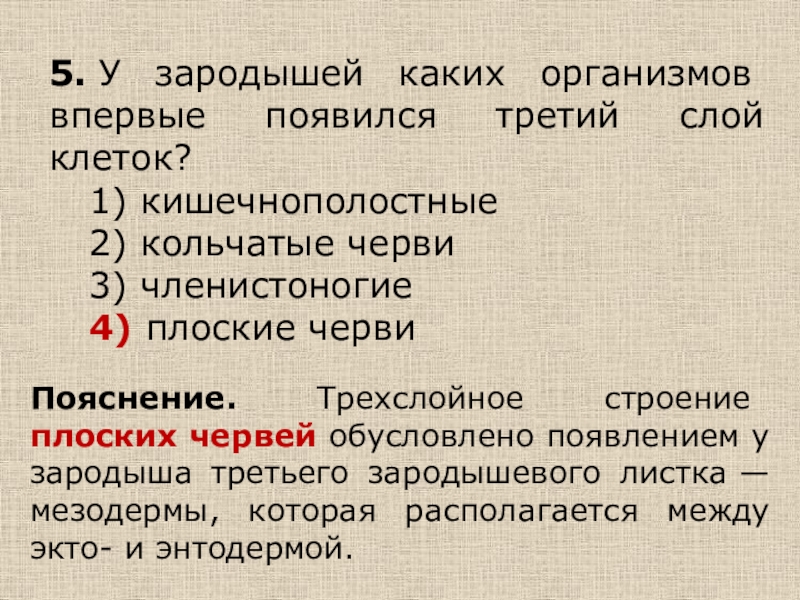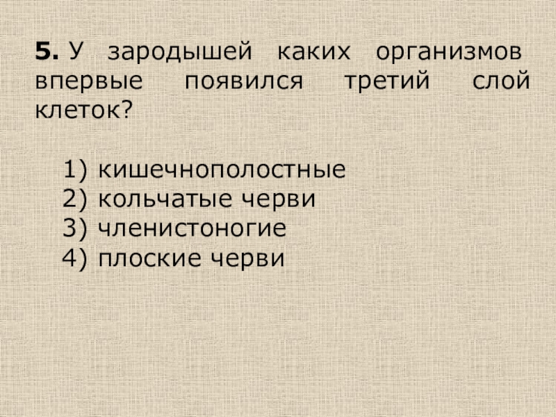 Слайд 325. У зародышей каких организмов впервые появился третий слой клеток?