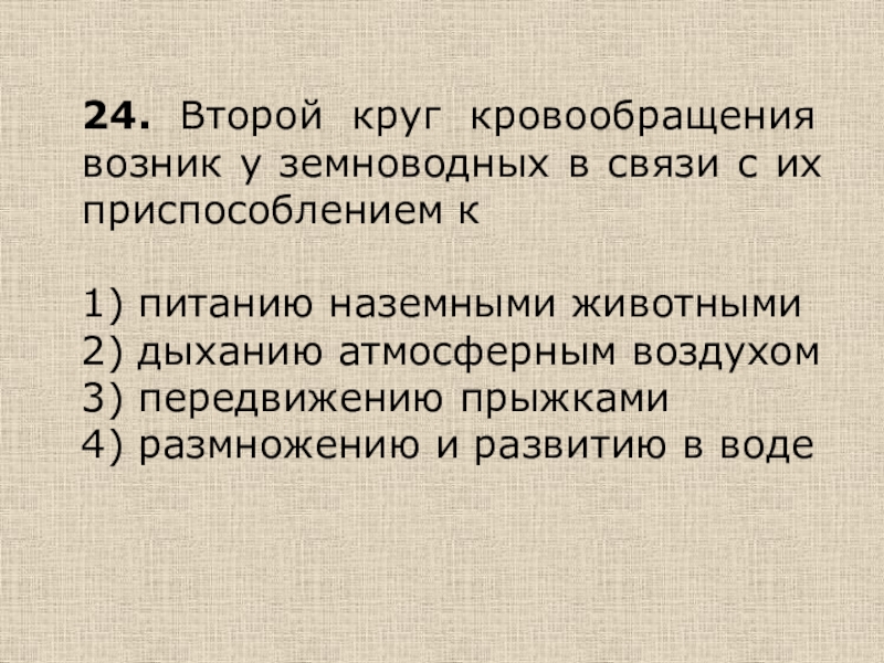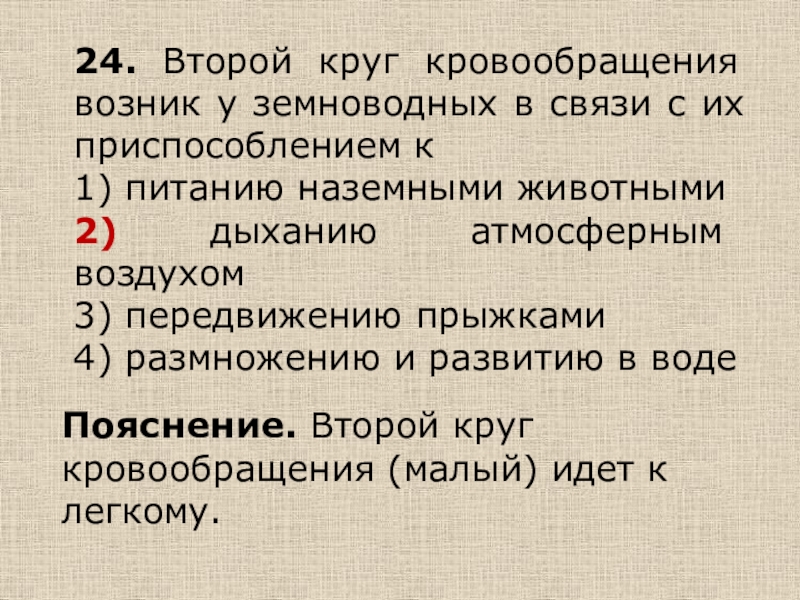 Слайд 9224. Второй круг кровообращения возник у земноводных в связи с их