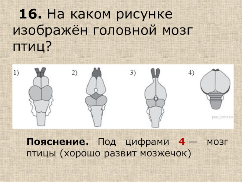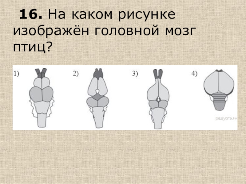 Слайд 8416. На каком рисунке изображён головной мозг птиц?