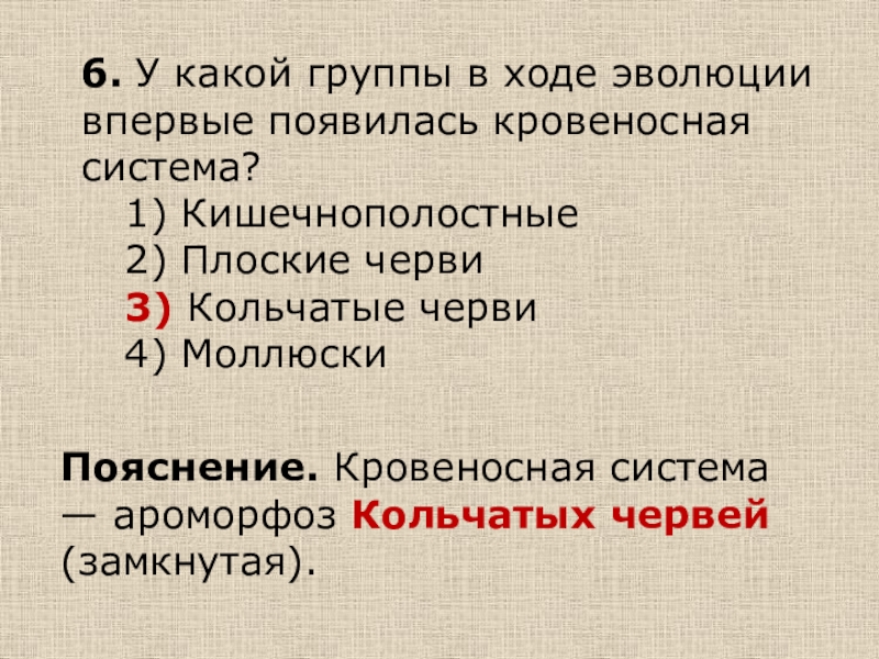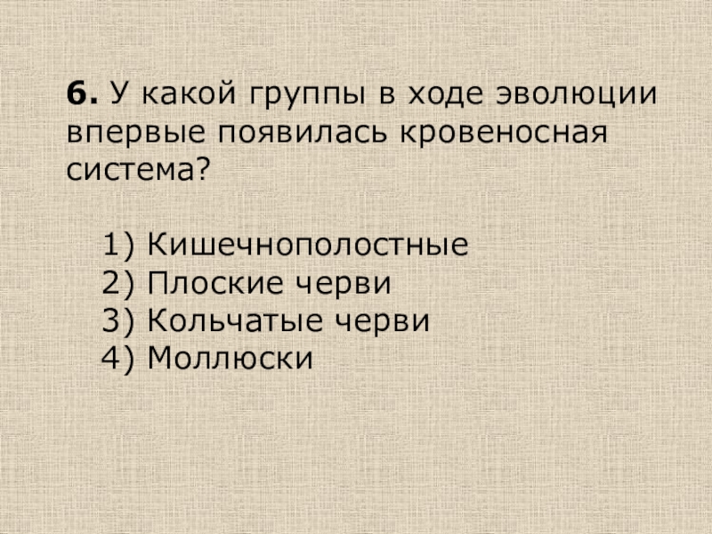 Слайд 746. У какой группы в ходе эволюции впервые появилась кровеносная система?