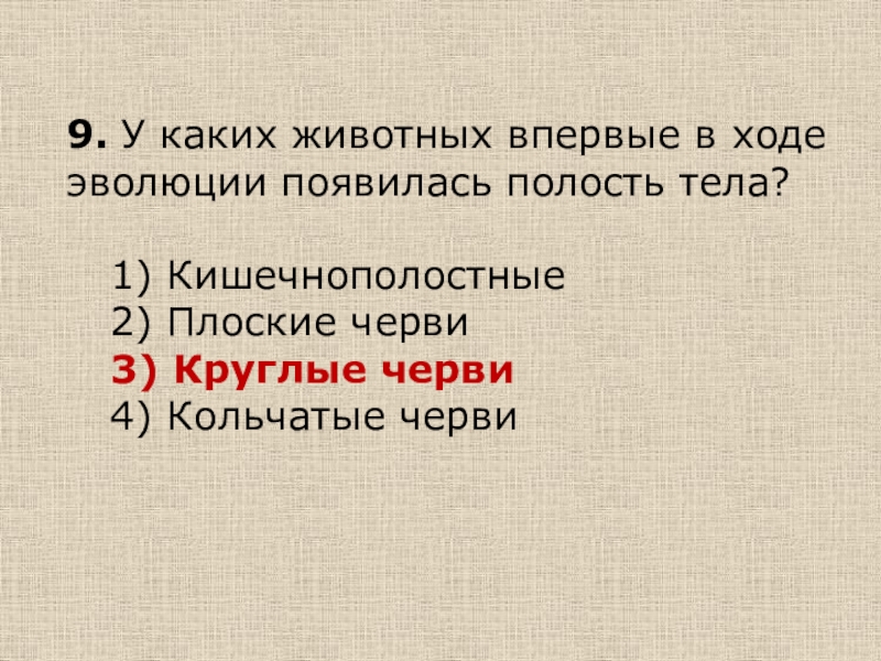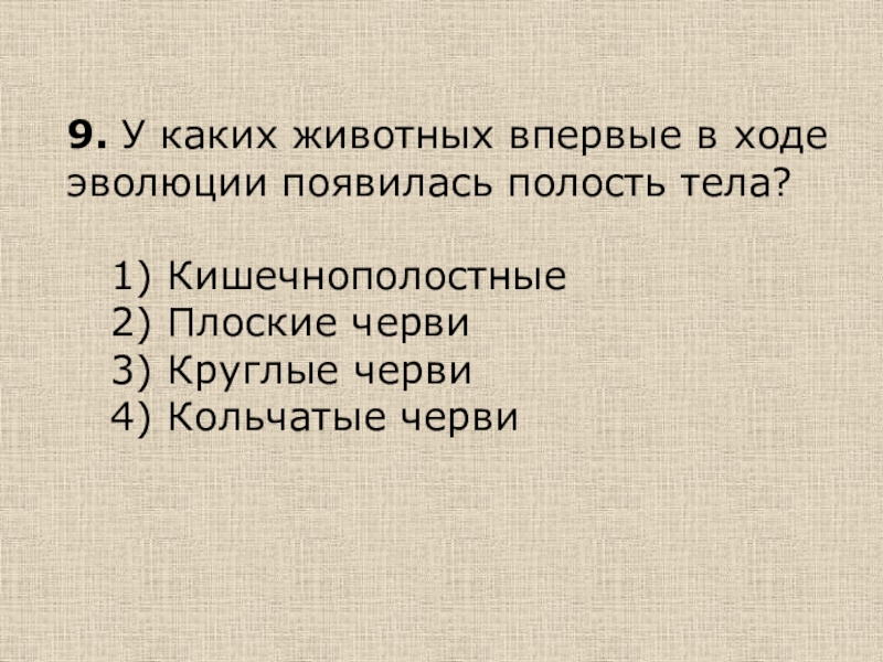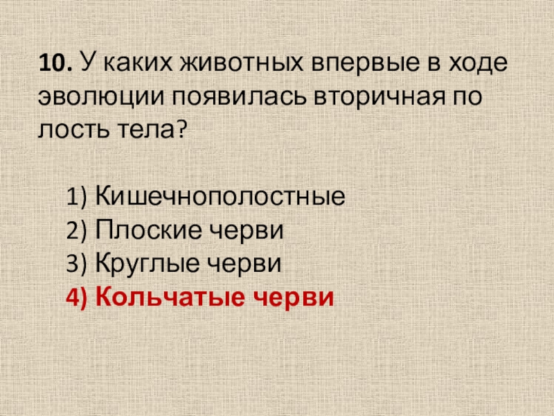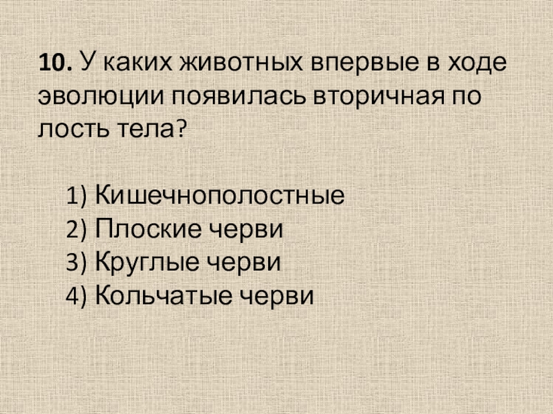 Слайд 3710. У каких животных впервые в ходе эволюции появилась вторичная полость