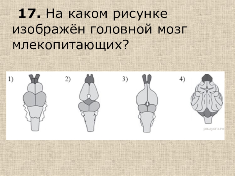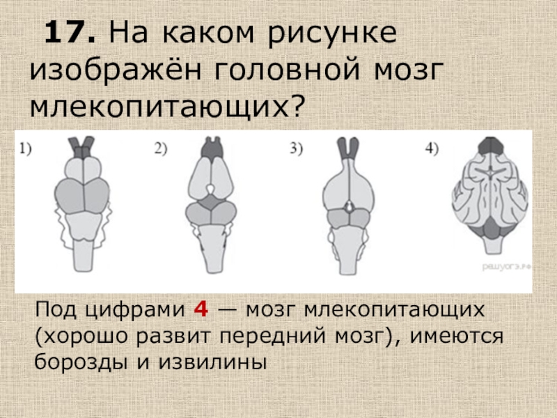 Слайд 8517. На каком рисунке изображён головной мозг млекопитающих?