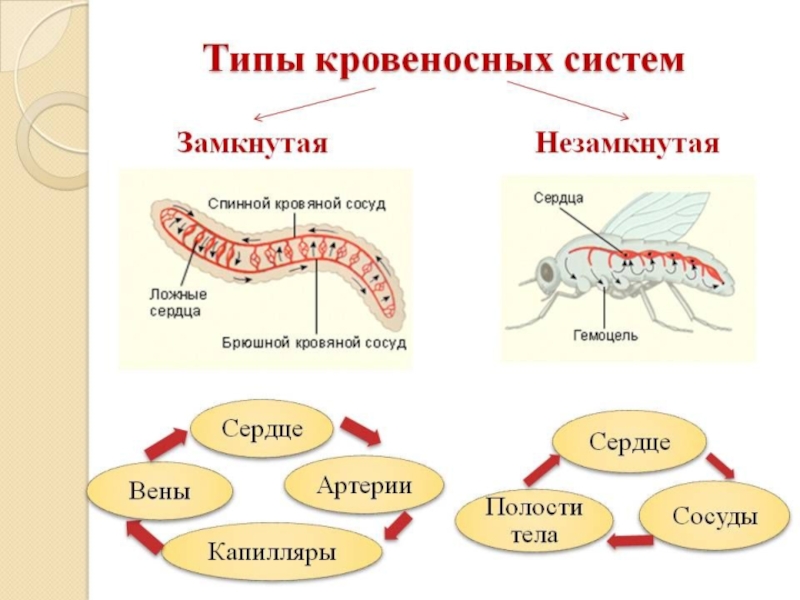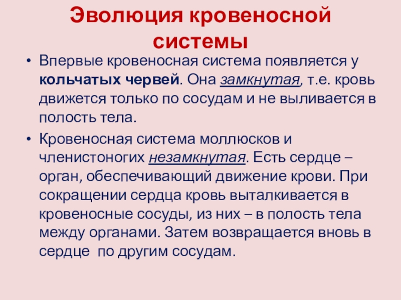 Впервые кровеносная система появляется у кольчатых червей. Она замкнутая,