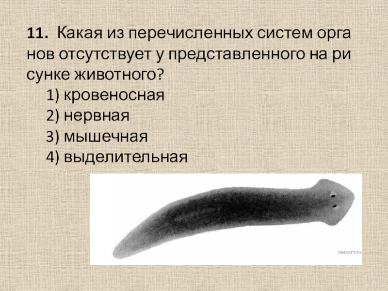 Слайд 3811. Какая из перечисленных систем органов отсутствует у представленного на рисунке
