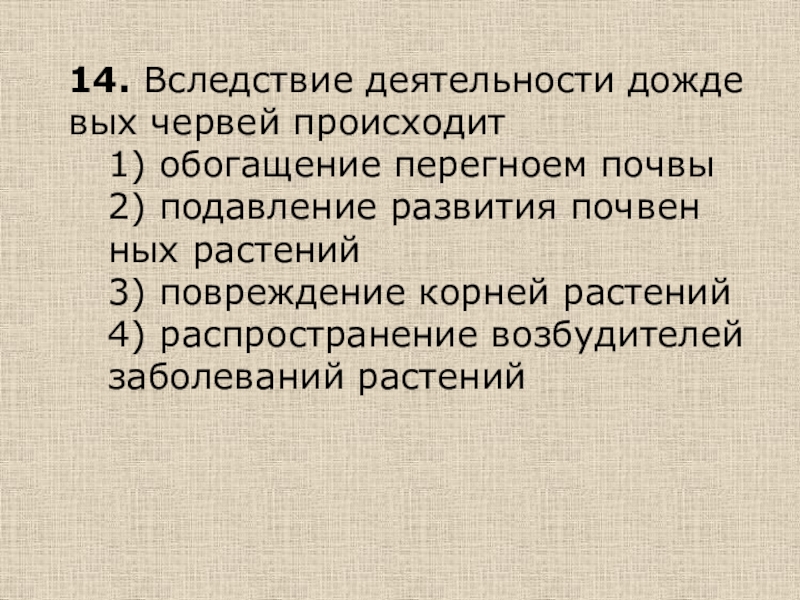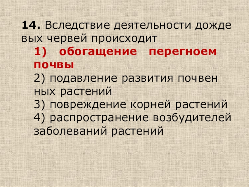 Слайд 8214. Вследствие деятельности дождевых червей происходит