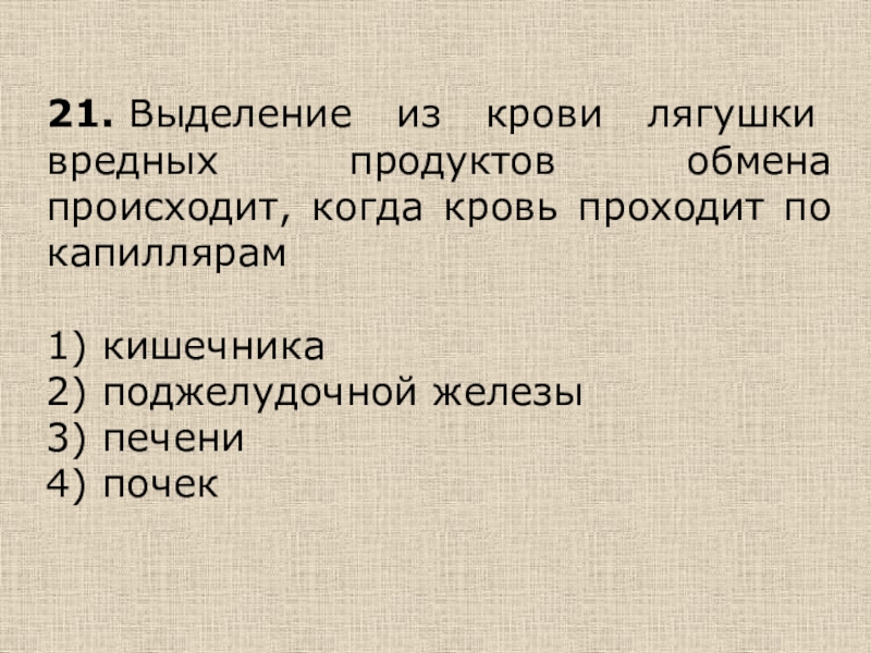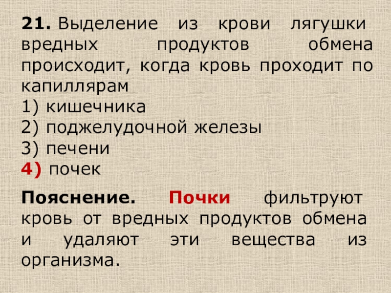 Слайд 8921. Выделение из крови лягушки вредных продуктов обмена происходит, когда кровь проходит