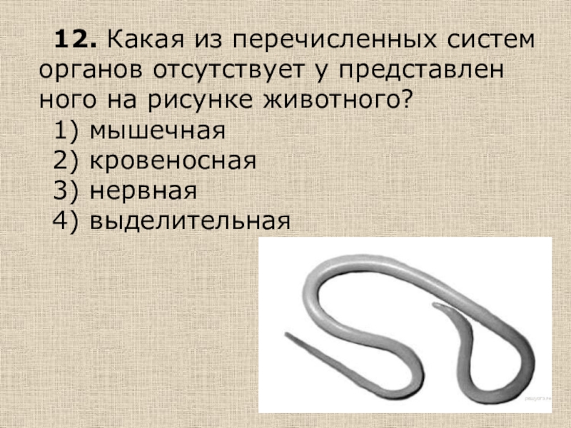 Слайд 3912. Какая из перечисленных систем органов отсутствует у представленного на рисунке животного?