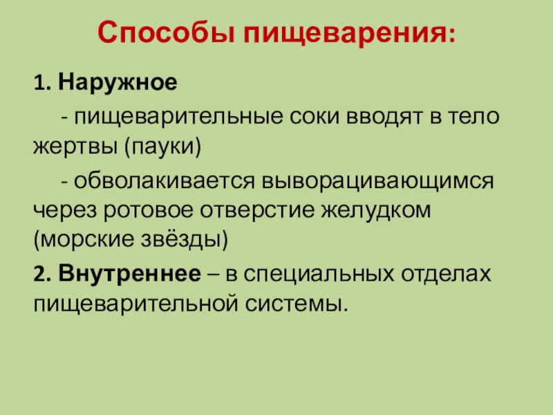 2. Внутреннее – в специальных отделах пищеварительной системы.