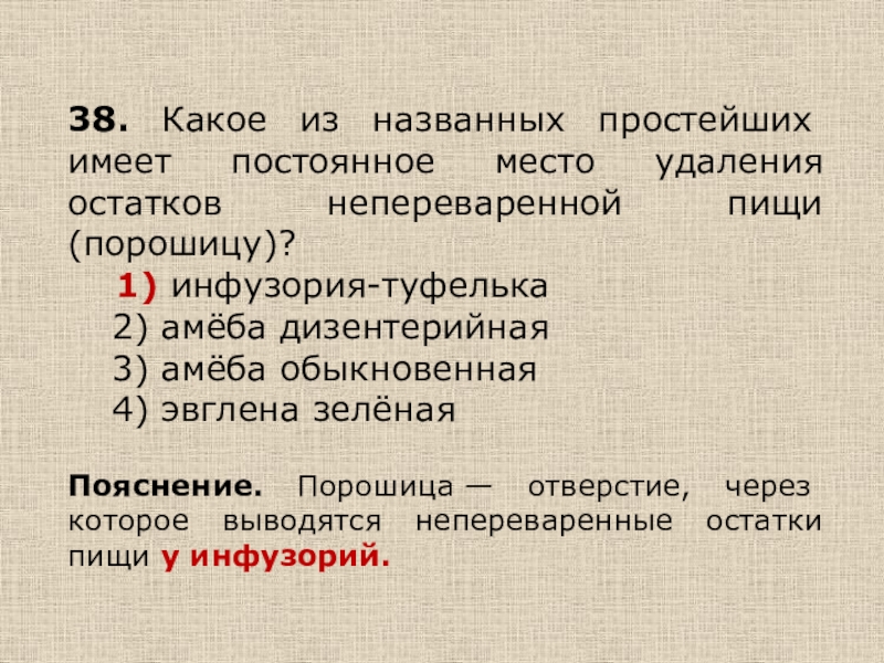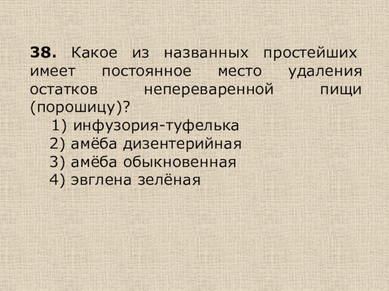 Слайд 10638. Какое из названных простейших имеет постоянное место удаления остатков непереваренной