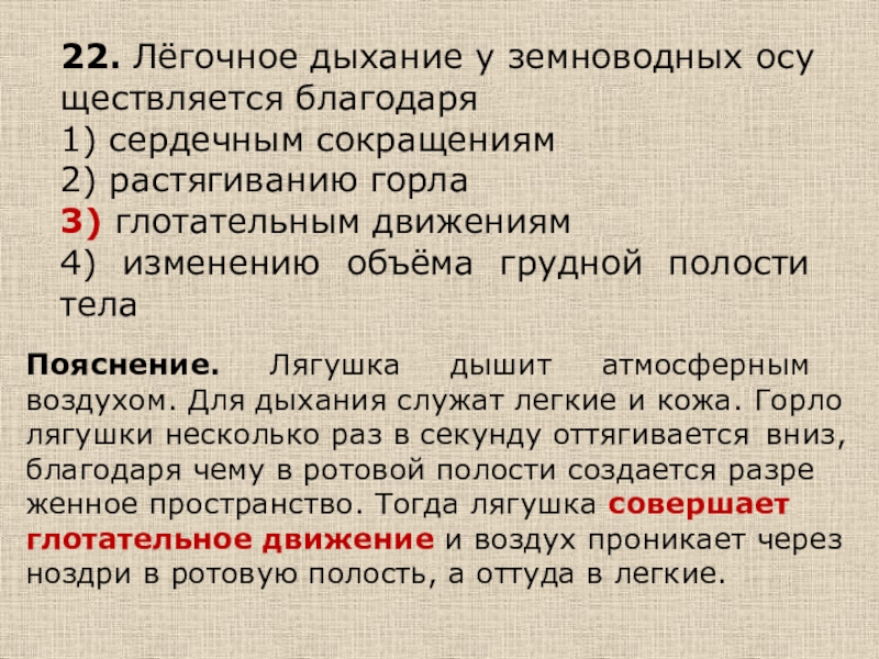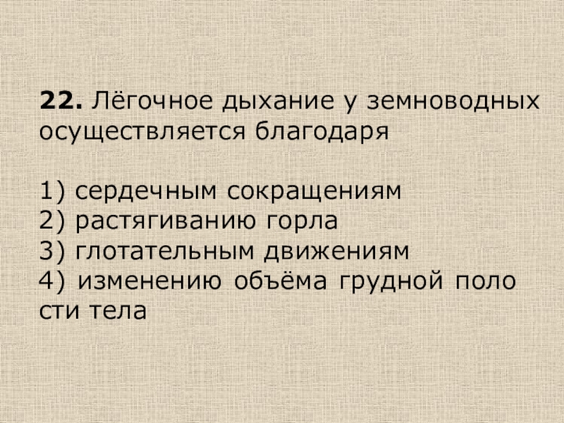 Слайд 9022. Лёгочное дыхание у земноводных осуществляется благодаря
