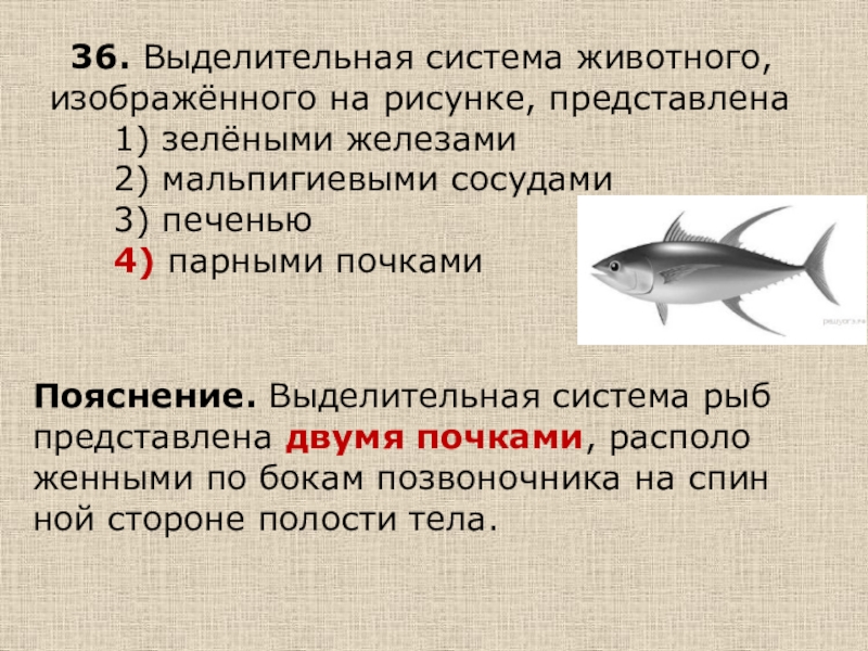 Слайд 10436. Выделительная система животного, изображённого на рисунке, представлена