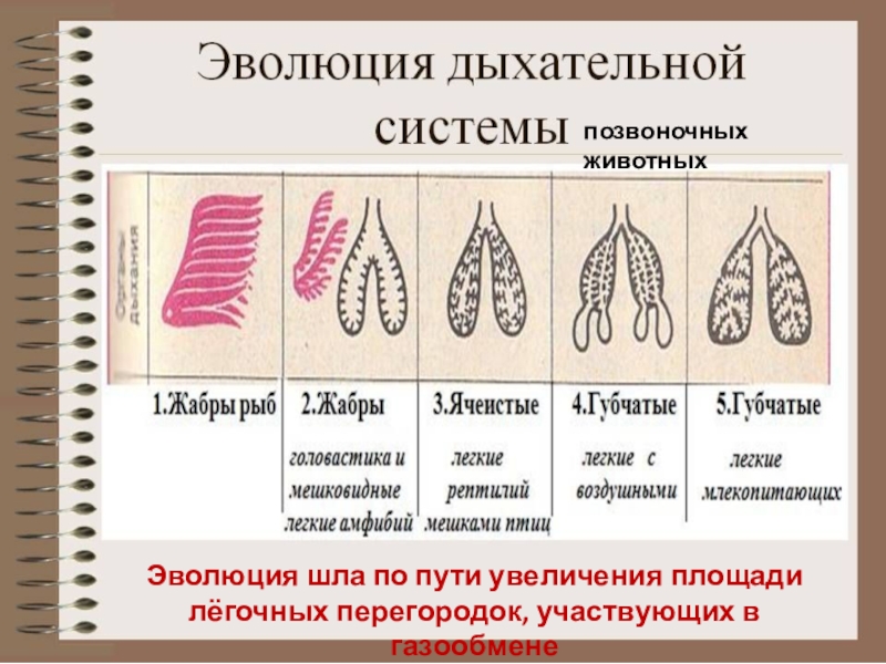 Эволюция шла по пути увеличения площади лёгочных перегородок, участвующих в