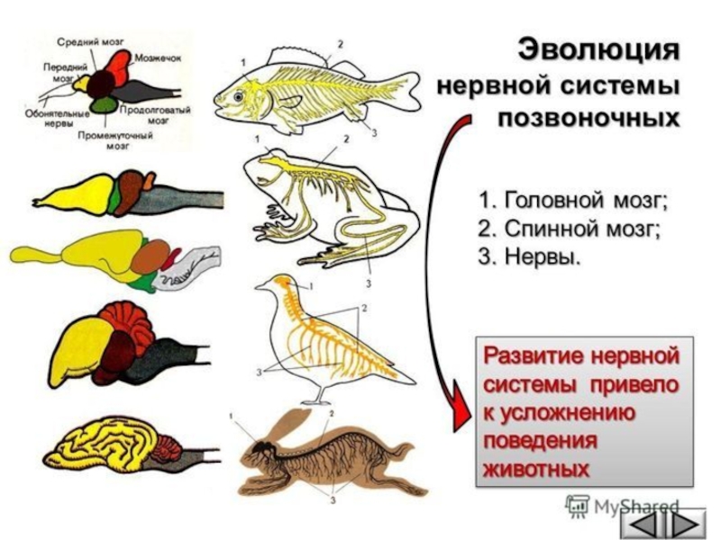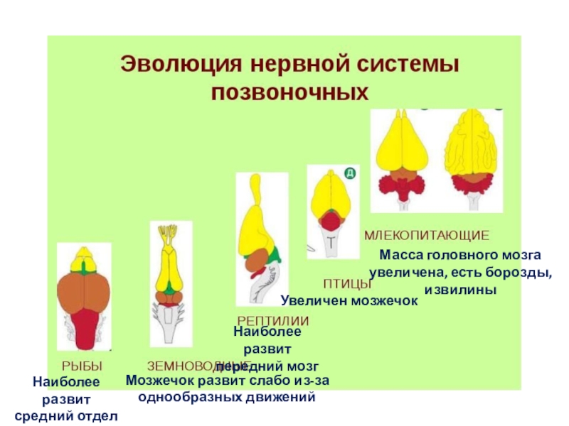 млекопитающих (хорошо развит передний мозг), имеются борозды и извилины