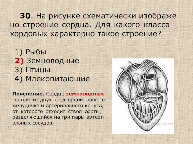 Слайд 98 30. На рисунке схематически изображено строение сердца. Для какого класса хордовых
