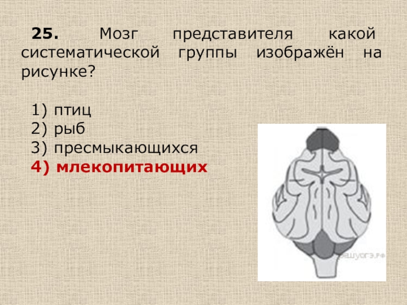 Слайд 9325. Мозг представителя какой систематической группы изображён на рисунке?