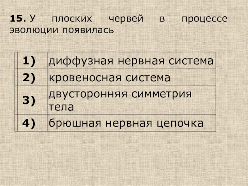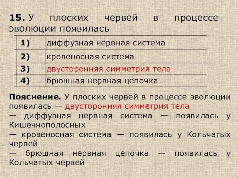 Слайд 8315. У плоских червей в процессе эволюции появилась