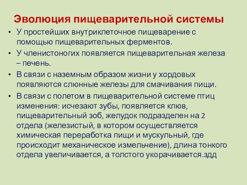 Слайд 12Новообразования в пищеварительной системе появляются в связи в освоением новой пищи
