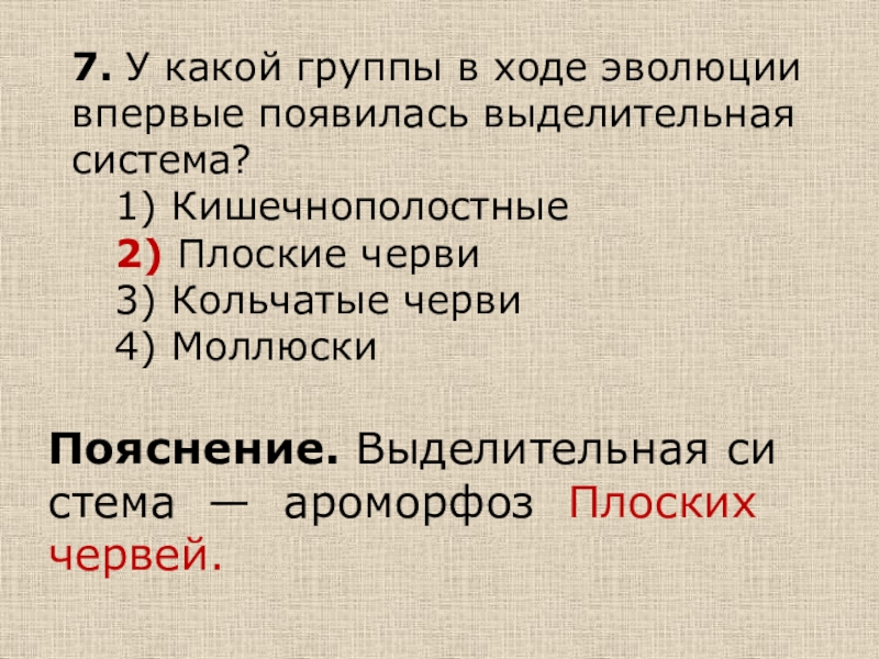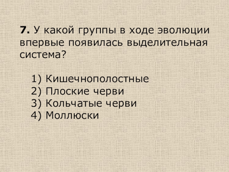 Слайд 757. У какой группы в ходе эволюции впервые появилась выделительная система?