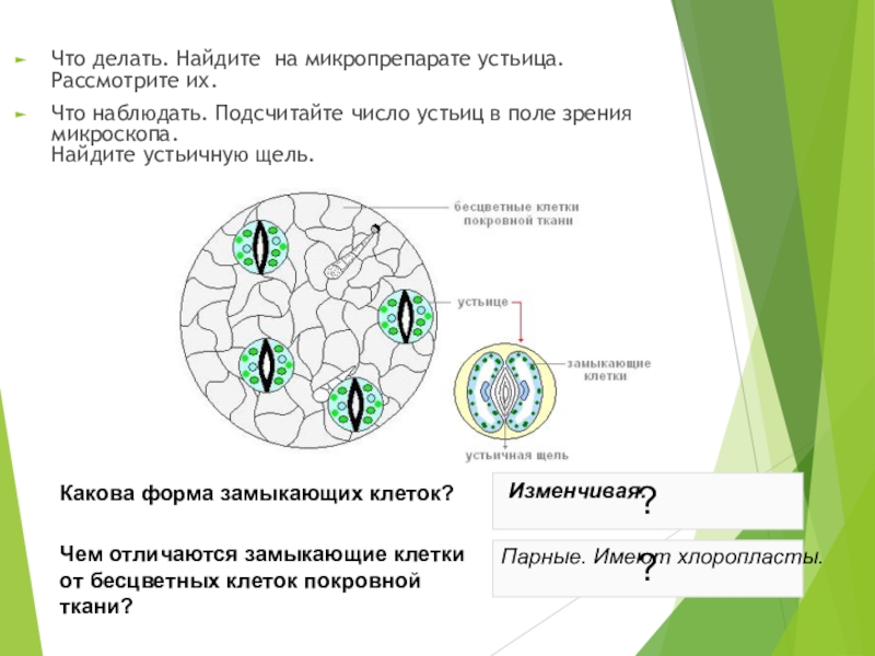 Чем отличаются замыкающие клетки от бесцветных клеток покровной ткани?