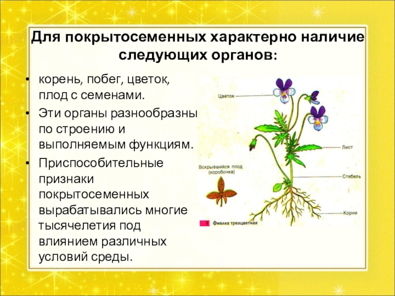 Слайд 2Для покрытосеменных характерно наличие следующих органов: