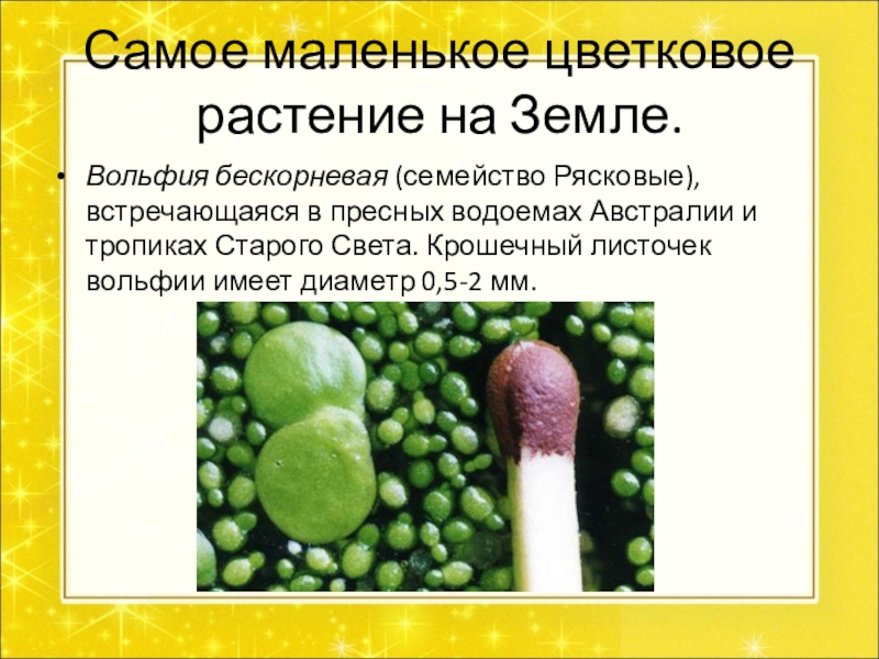 Слайд 7Самое маленькое цветковое растение на Земле.