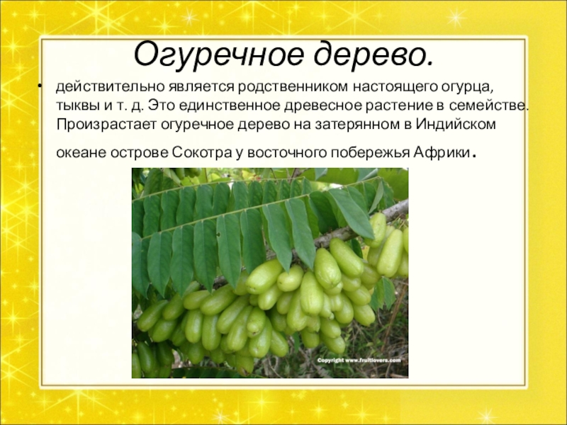 Слайд 20Огуречное дерево.
