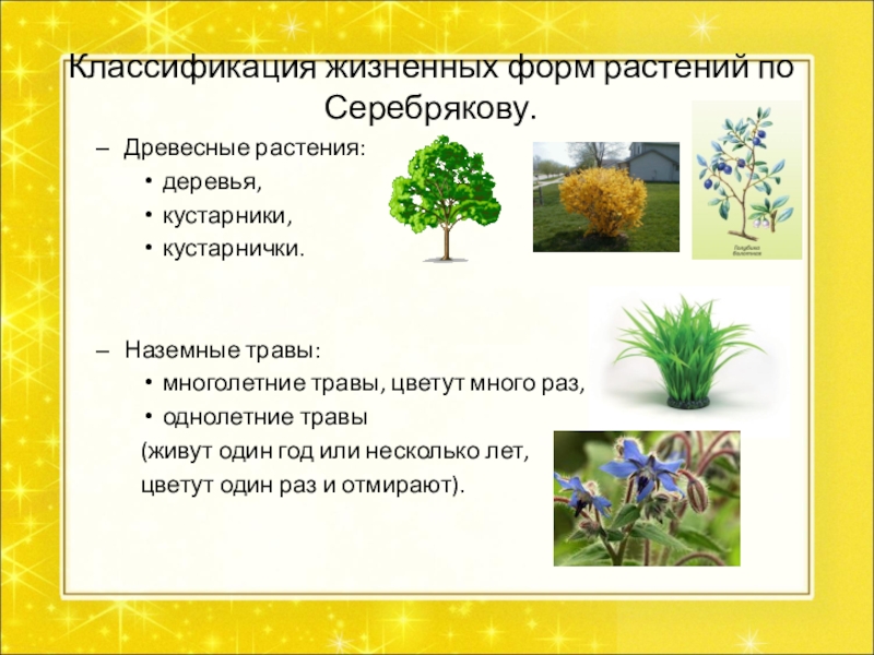 Слайд 5Классификация жизненных форм растений по Серебрякову.