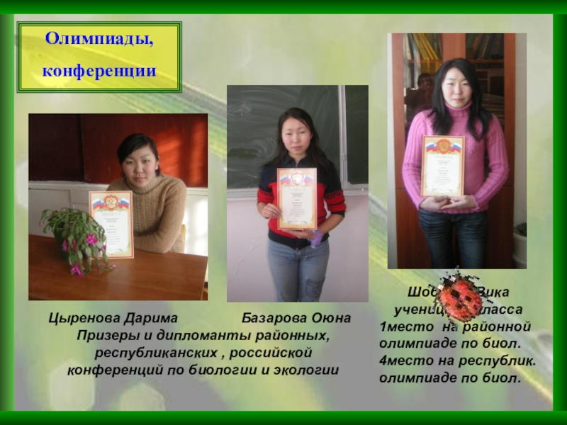 Призеры и дипломанты районных,республиканских , российской конференций по биологии и экологии